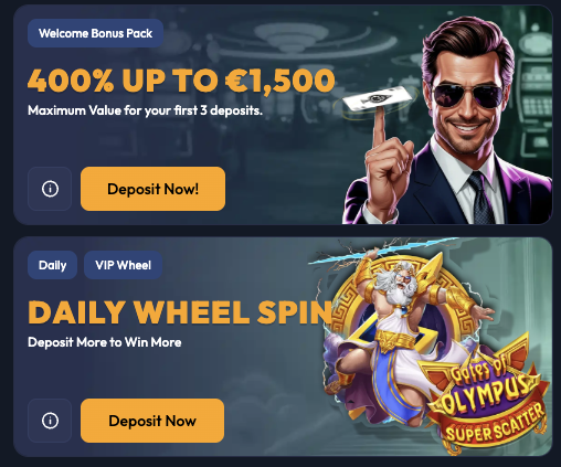 | Bonus dobrodošlice (igralnica) | 400 % do 1.500 € – razporejen na prve 3 pologe |
